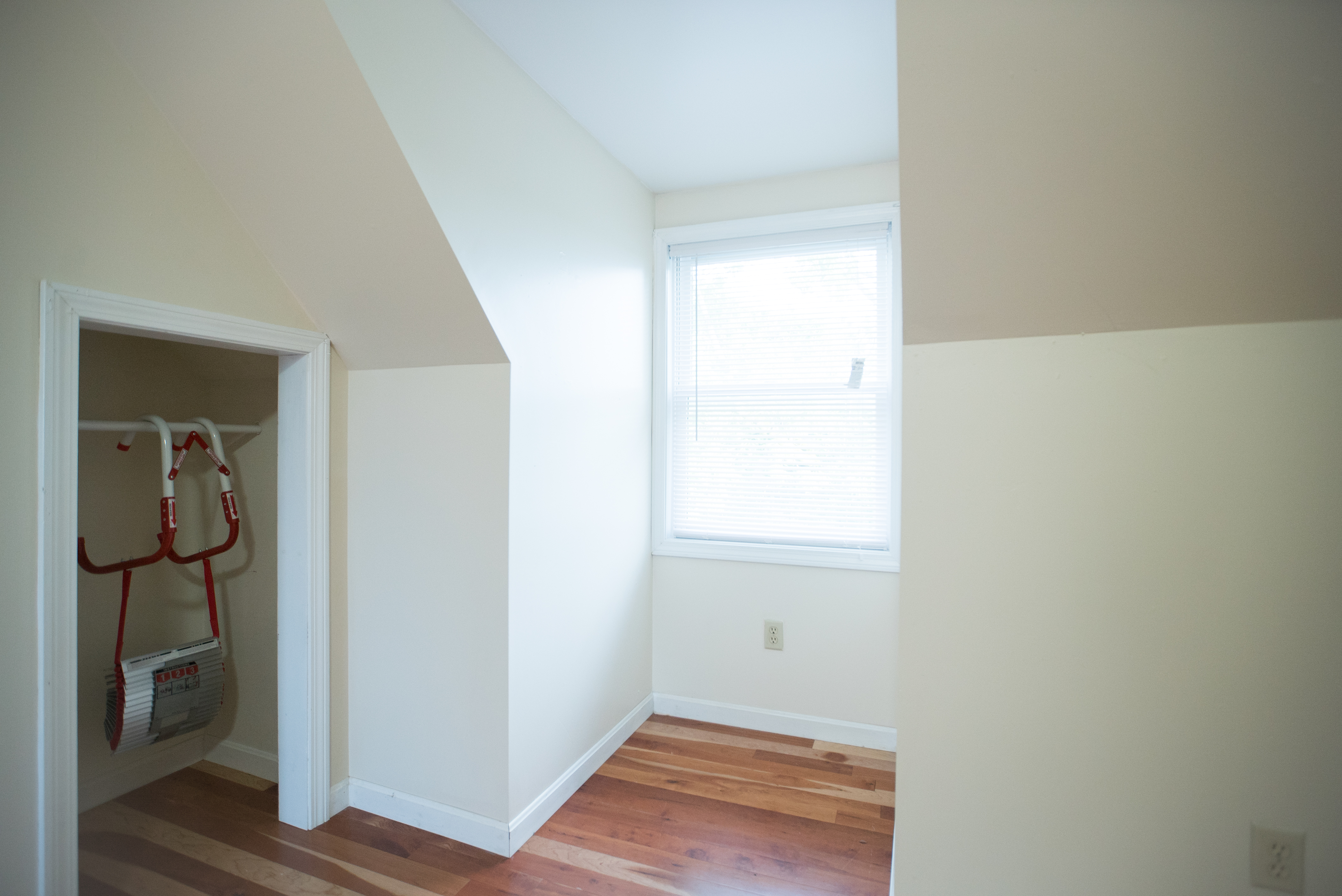 Nice apartment for four students. Living room and two bedrooms are on ground floor. Stairway leads upstairs to third level of house with two other large bedrooms. All bedrooms have great closet space. Bathroom is updated with new counter top, cabinet and tub.